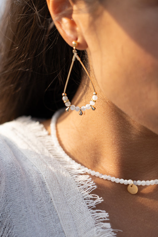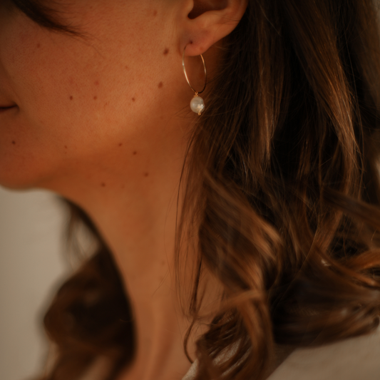 Boucles d'oreilles créoles perles d'eau douce grand modèle