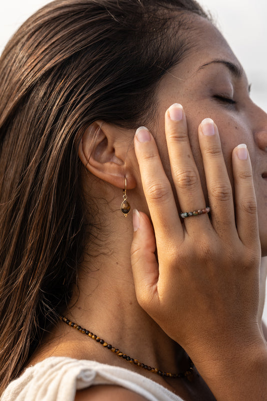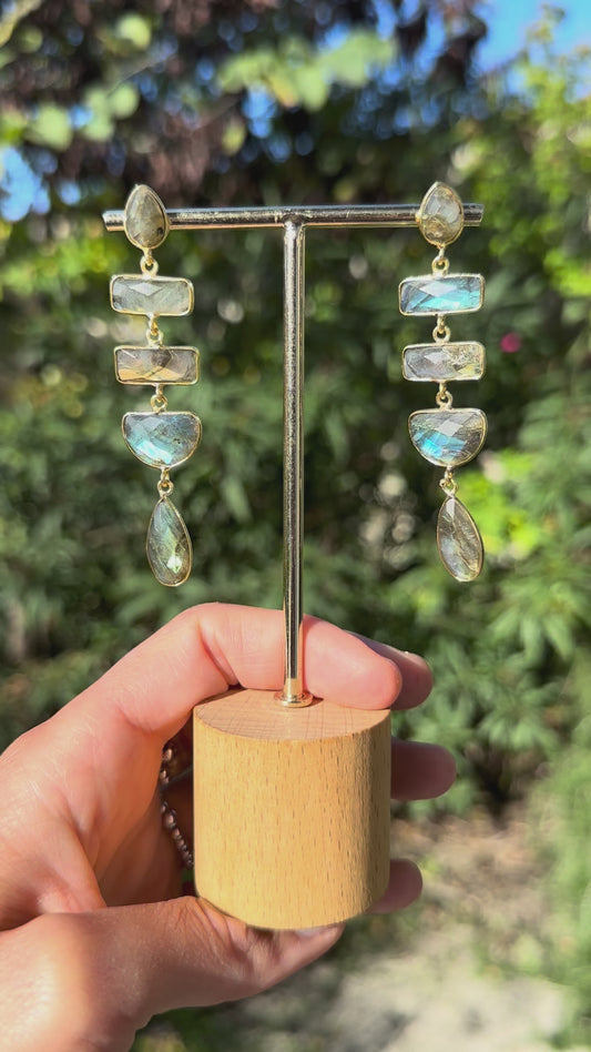 Boucles d’oreilles labradorite – Dorées à l’or fin