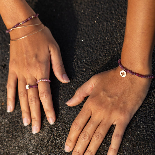 Composition bracelet rubis et joncs