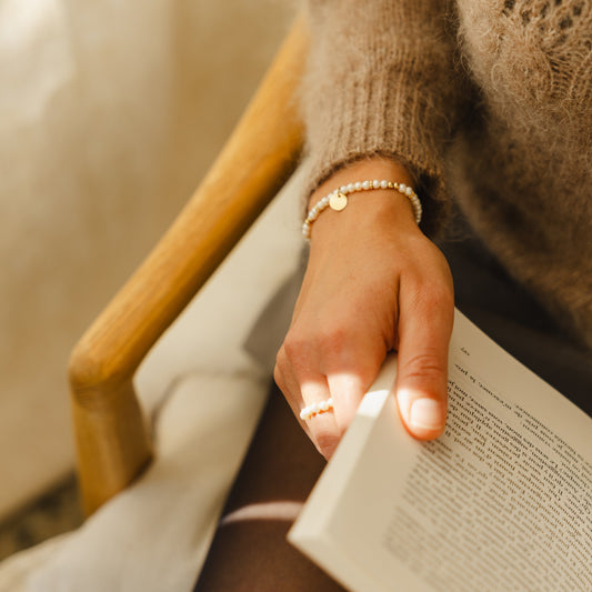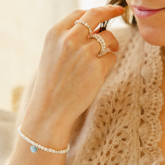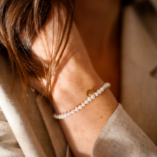 Bracelet en perles d’eau douce, médaille et fleurs – argent 925