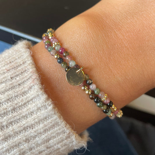 Bracelet double tourmaline multicolore facettée – plaqué or