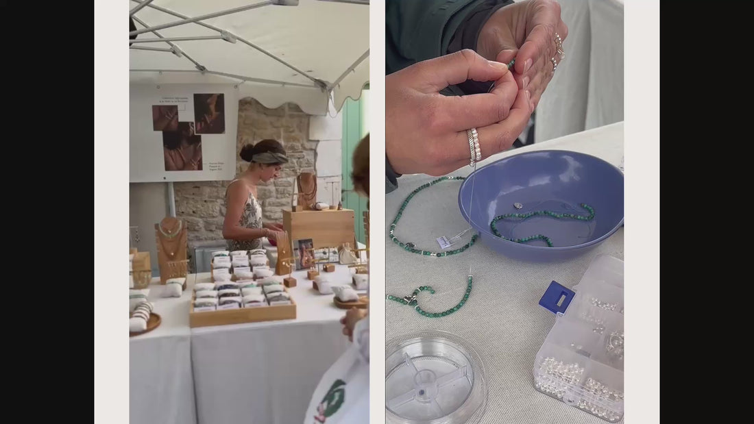 Dans son atelier de La Rochelle, Isaure, la fondatrice de la marque imagine, compose et assemble chacune de ses pièces à la main. Chaque pierre fine et perles d'eau sont minutieusement sélectionnées pour sa beauté, son caractère et ses propriétés. L’argent 925 et le plaqué or 3 microns viennent sublimer leur éclat naturel.